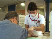 この病院では、子育て中の看護師が多く、いろいろな働き方が選べるそうです。長堀さんは、今は、日勤の正規スタッフより一時間短いパートタイマーとして週4日間働いています。これから看護の勉強を深めて、認定看護師の資格をとりたいという希望も持っているそうです。
