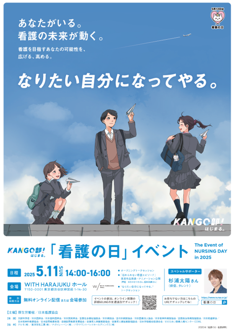 2025年の「看護の日」イベントでは、これから看護の道を目指す若い皆さんにプロフェッショナルとしての看護の魅力を伝えるトークイベントを開催します。
