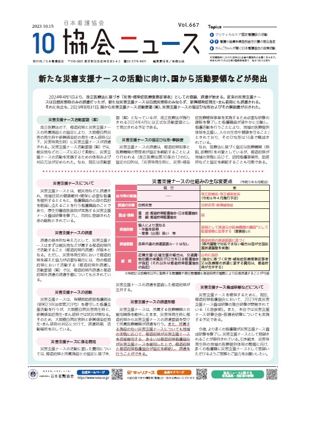 - 新たな災害支援ナースの活動に向け、国から活動要領などが発出