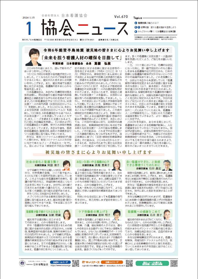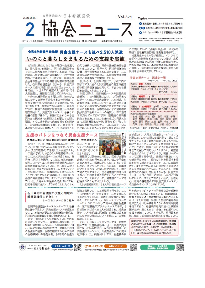 - 令和6年能登半島地震 災害支援ナースを延べ2,510人派遣「いのちと暮らしをまもるための支援を実施」