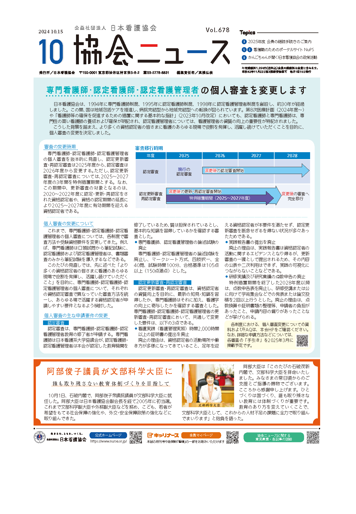 - 専門看護師・認定看護師・認定看護管理者の個人審査を変更します