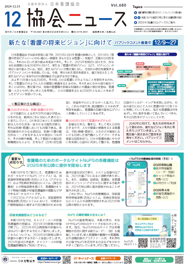 - 新たな「看護の将来ビジョン」に向けて パブリックコメント募集中 12/9~27