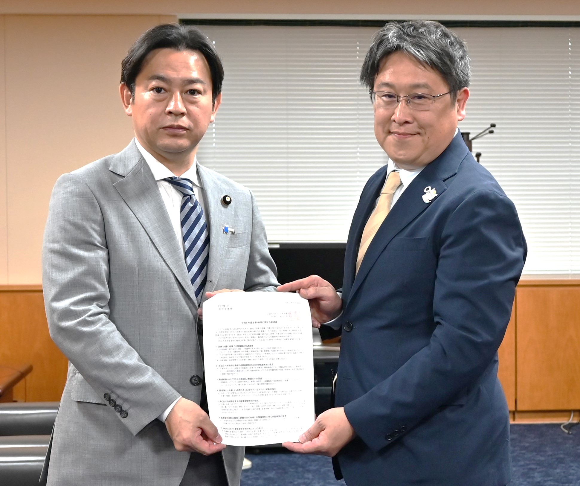 日本看護協会の秋山智弥会長は6月12日、厚生労働省を訪問し福岡資麿厚生労働大臣に「令和8年度予算・政策に関する要望書」を提出した。