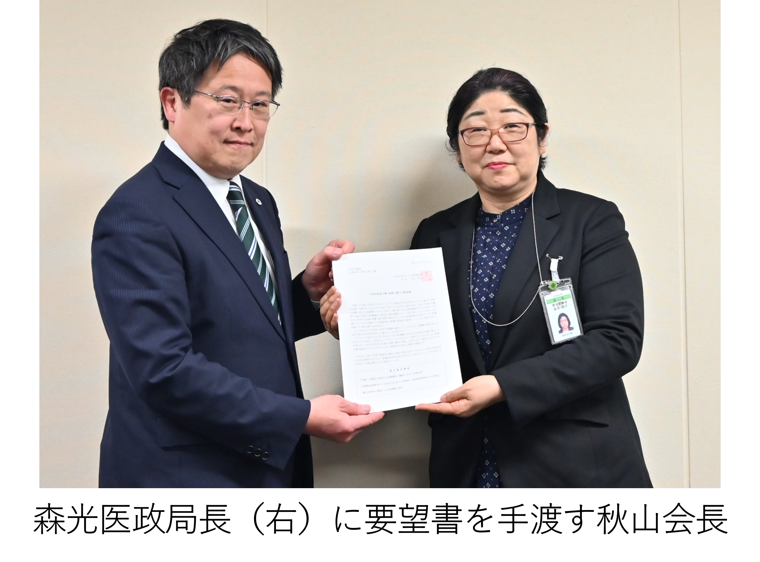 森光医政局長は「処遇改善については、経済対策を踏まえた補正予算や令和8年度診療報酬改定で措置され、夜勤手当にも配慮している。さらなる処遇改善に向けて一緒に取り組んでいきたい」と応じた。また、看護師基礎教育に関しては、養成所の状況は認識しており、各県ごとに必要な養成数や教育内容などについて議論が必要とした上で「保健師・助産師の大学院化は期待するが、実務的に考えると希望者が減るのではないか」との懸念を示した。偏在是正については「養成や確保に向けた今後の議論の中で、貴会だけでなく都道府県看護協会とも協力しながら進めていきたい」と述べた。