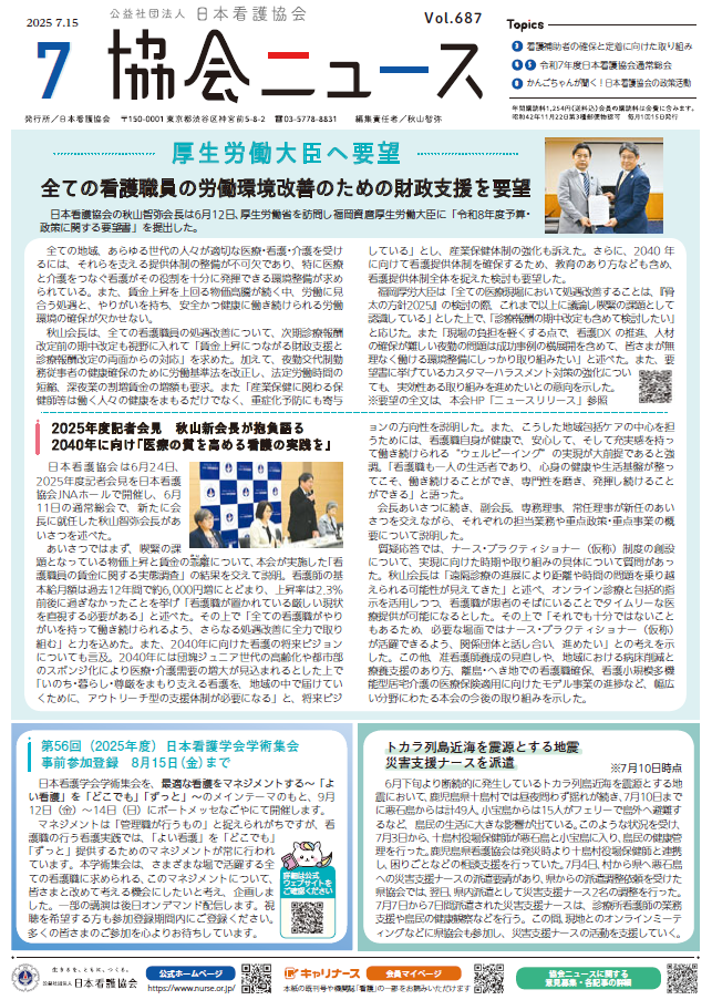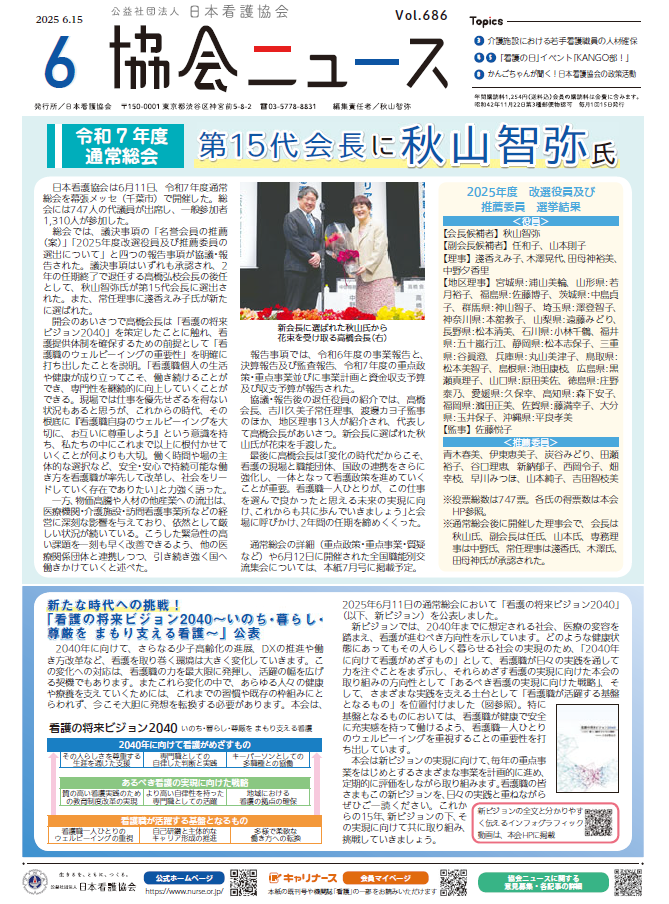 - 2025年度記者会見 秋山新会長が抱負語る 2040年に向け「医療の質を高める看護の実践を」