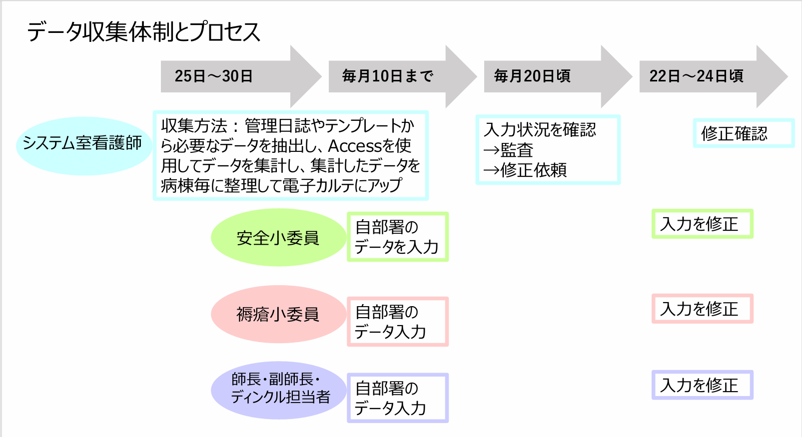 2019年度からDiNQL事業に参加。病棟負担を最小化するため、独自のExcel収集・集計シートを導入し、電子カルテやDWHなどを組み合わせてデータ収集・集計を効率化した方法を紹介します。