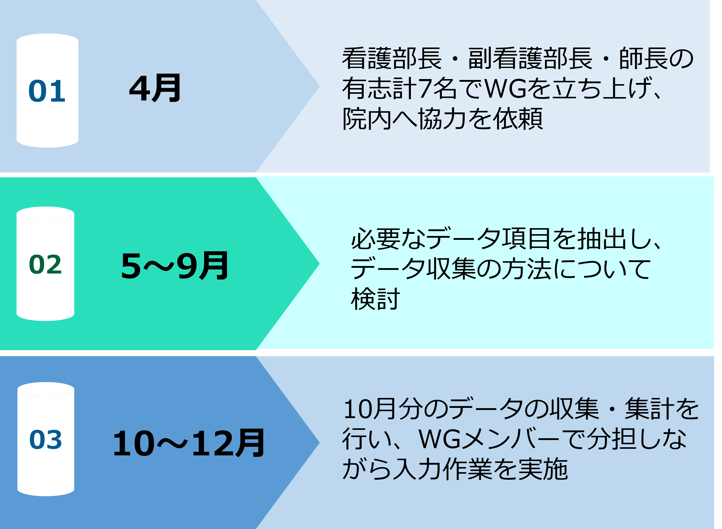 2019年度からDiNQL事業に参加。2019年度から看護部主導でDiNQL会議を立ち上げ、「データ入力」「データ活用方法」に関する目標を立案し、年々取り組みを進化させていきました。本稿では、DiNQL会議での目標「データ活用方法」の3年目以降の具体的な取り組みを紹介します。(2024年3月19日掲載)