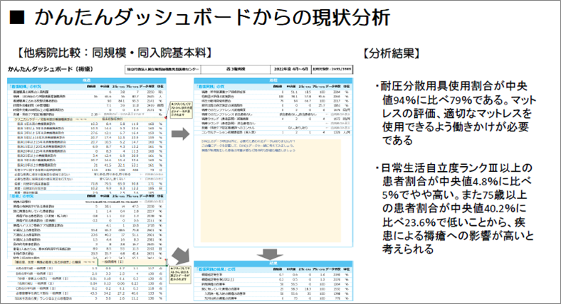 看護師は患者に日々看護実践を行っていますが、その看護実践の評価は簡単ではありません。看護実践のデータを可視化し他院との比較を行い、現状を把握することで更なる看護の質向上を図りたいと考え、DiNQL事業に参加することとしました。