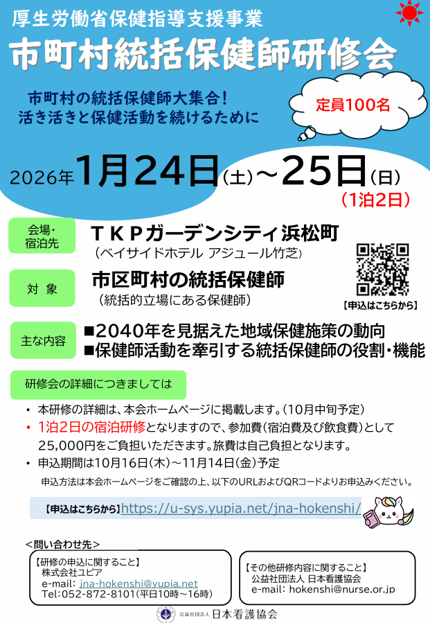 令和7年度厚生労働省保健指導支援事業「市町村統括保健師研修会」【参加者募集】