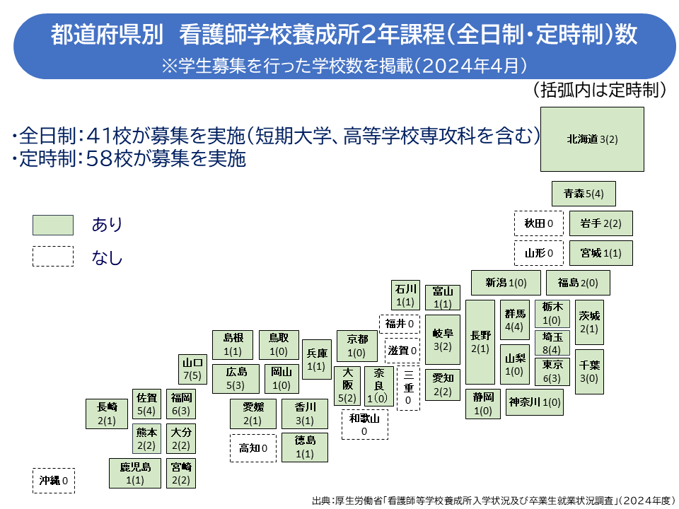 都道府県別 看護師学校養成所2年課程(全日制・定時制)数