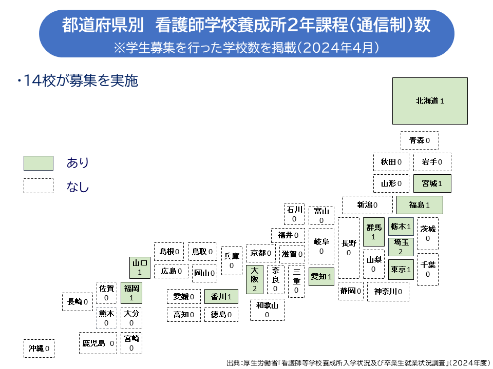 都道府県別 看護師学校養成所2年課程(通信制)数