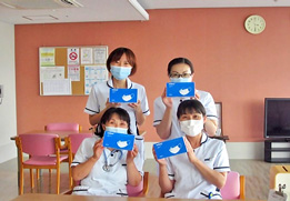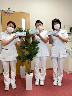 企業の皆様、千葉県看護協会の皆様のご厚意により貴重なマスクのご寄付をいただきお礼を申し上げます。 ご寄付いただきましたマスクは、各部署で大切に使わせていただいております。長引くコロナ禍の状況で温かいお気持ちをいただいたことは職員一同のやる気につながっております。これからも、感染拡大防止に努めていきたいと存じます。