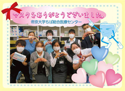 先日は、貴重なマスクをお譲りいただきありがとうございました。患者様を守るために、大切に使わせていただきます。