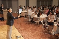 日本看護協会では、自らも被災された看護職の方への支援活動を続けています。2012年6月7日には、リフレッシュ支援事業として、全国職能別交流集会に岩手県・宮城県・福島県から119人をご招待しました。その後の懇親会では、本会役員・地区理事、職能委員が合流し、総勢約210人で食事と語らいのひとときを持ちました。