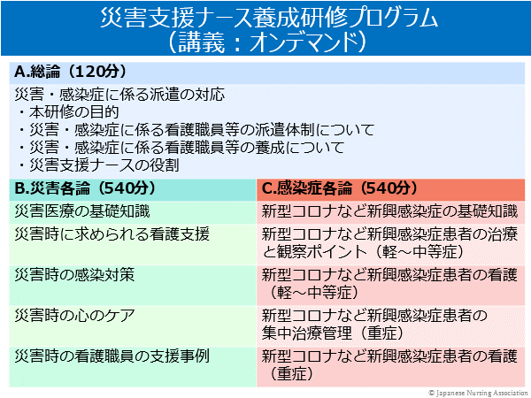 オンデマンド研修は、総論、災害各論、感染症各論を合わせて20時間以上となります。