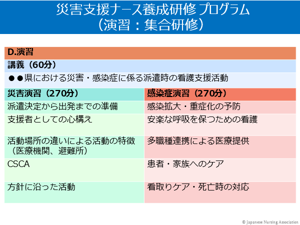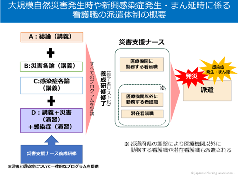 - 災害支援ナースに関する研修について、詳しくは、研修ポータルサイト「災害支援ナースに関する情報」をご覧ください。