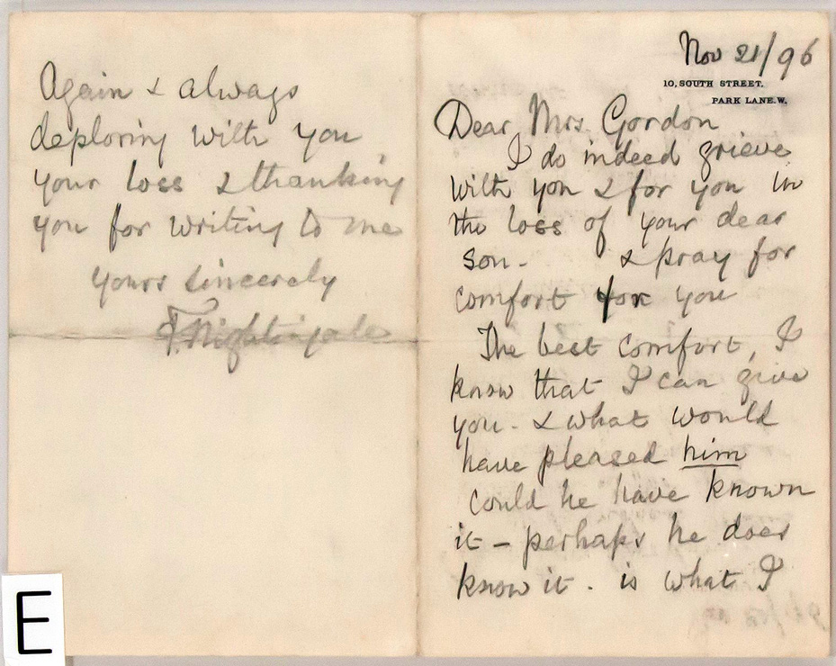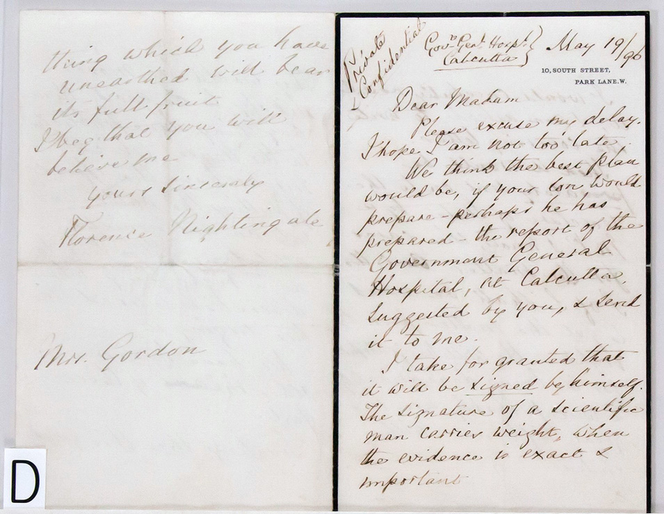 - この書簡は、著作を贈られたナイチンゲールが Mrs. Gordonに出した礼状。
