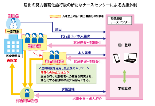 届出の努力義務化施行後の新たなナースセンターによる支援体制