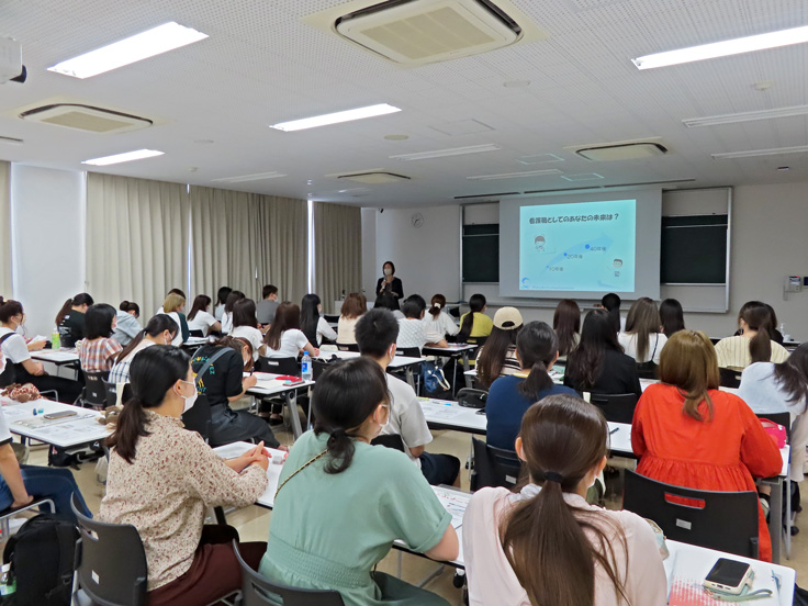 福岡県看護協会では、来年度新人看護職として第一歩を踏みだす看護学生の皆さまが、看護に必要な知識とスキルを重ね、キャリアアップして欲しいと思い、看護大学での講義事業に取り組んでいます。