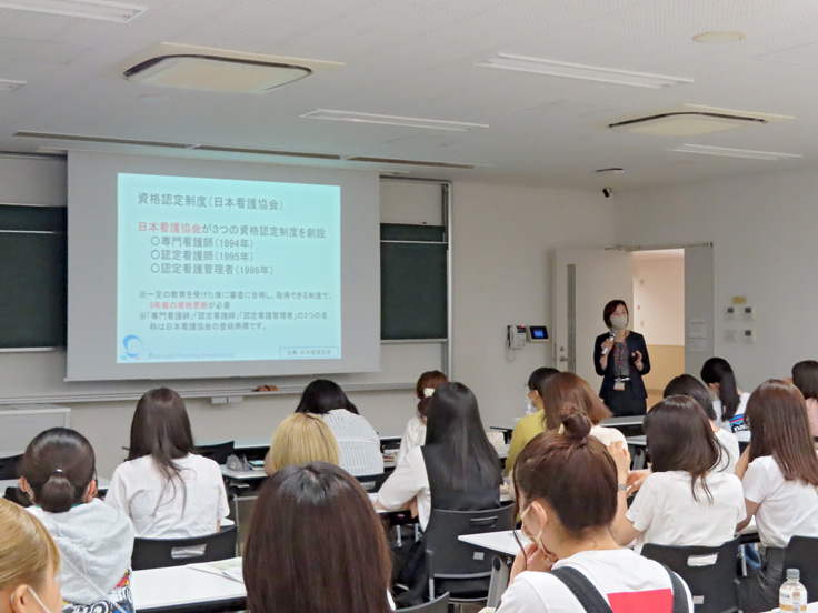 福岡県看護協会会長が看護大学を訪問し、4年生を対象とした講義を行っております。