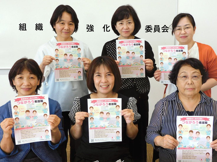 協会役員が施設訪問等を行い、施設ごとの過去3年間の会員数分析データを基に、看護管理者の皆さまと入会促進にかかる意見交換や取り組みへの依頼を行いました。頂いた意見(例:退会届に退会理由欄を設けるなど)は会員増強施策に活かしています。また、訪問時に配布する入会案内のチラシは現場の看護管理者で構成する組織強化委員が自らの職場での経験等を生かしながら企画・作成し、配布効果を高めています。