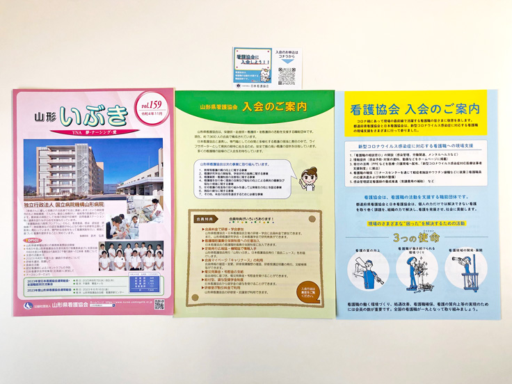 11月発行の広報誌「山形いぶき」には、入会案内チラシや入会案内カードを同封し、看護協会への入会に繋げるツールとして、約600ケ所に発送しました。