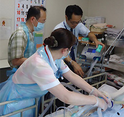 その後、特定行為を修了した認定看護師には、引き続き研修期間を設けて配属部署である高度救命救急センターで経験を積ませている。