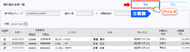 ③ チェックした対象者の人数と、金額を確認して、相違なければ「登録」をクリックします。